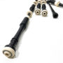 The Pipers’ Choice Full Imitation model offer you a great set of highland bagpipes at an affordable price. The pipes are made from Delrin, a very durable plastic. The Delrin is designed as a Blackwood imitation. Because they are not Blackwood, crossing the border with your pipes is a breeze. They have imitation ivory projecting mounts and drones are combed. The pipes come with a synthetic bag, with synthetic drone reeds, pipe cover, and cords. The chanter reed is a cane reed. These pipes are fully set up and ready to go. If you are looking for a set of bagpipes that look great, sound great and come at a great price, then these pipes are for you. Made in Canada.